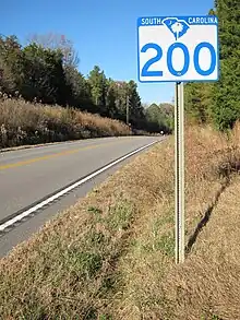 South Carolina Highway 200 (SC 200) is a 42.780-mile (68.848 km) primary state highway in the U.S. state of South Carolina. The highway travels more in a north–south direction, despite being signed as east–west. It connects the cities of Winnsboro, Great Falls, and Lancaster.
