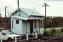 By 1976, with the downturn in traffic, signal boxes remained only at East Greta Junction, Weston, Neath and Caledonia. The double track had been cut back to Caledonia in 1973 with the closure of the lines to Cessnock station & Maitland Main Colliery; the electric staff instruments for the Bellbird branch were transferred to Caledonia signal box. On 27 November 1982 Weston Signal box closed. This was soon followed by the end of double track working on 7 December 1982 when the down line was taken out of use. Electric staff working was then used between East Greta Junction and Neath, and between Neath and Caledonia.[55] Caledonia signal box closed from 10 June 1983 and the section from Neath to Pelton was then worked by Ordinary Train Staff, this was changed to Ordinary Train Staff and Ticket from 18 December 1984. Neath Signal box closed on 3 September 1996, leaving the entire branch from East Greta Junction to Pelton worked as a single section by Ordinary Train Staff and Ticket.[56] The signal box at East Greta Junction remains open.