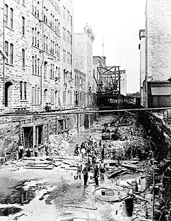 Power Canal being made deeper with concentrated mills on both sides 1885 (Minnesota Historical Society) [1]
