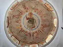 The whole original painting can not be reconstructed, however, it is clear that the northern and the southern walls had five rows of images each. Nothing survived from the frescoes of the western and the eastern walls. The frescoes of the dome were almost left intact. They depict the Ascension of Jesus. Below, the Apostles and the Prophets are painted.[1]
