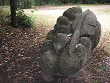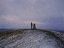 Antony Gormley sculpture, "A View, A Place", 1986. It was sited at the festival's highest point looking out over the Fowlea Valley, next to the OS trigonometry marker-stone. The site is now completely enclosed by woodland.