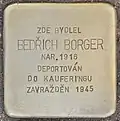 116. 1 2 3 Sušické Noviny: Památka na tragický osud vtisknutá do dlažby, 26. August 2016, p. 3, retrieved on 1 April 2017 (with a picture of the newly collocated Stolpersteine for Borger, Fischer and Fischerová)