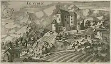 Bistrica Castle as documented by Johann Weikhard von Valvasor, 1679