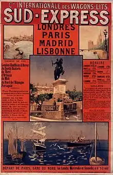 Sud Express (also called Surexpreso[3] Spanish: [suɾeɣsˈpɾeso] and Sud Expresso[4] Portuguese: [suðɨʃˈpɾesu]) is an overnight passenger train connecting Lisbon with Hendaye, a French commune on the Franco-Spanish border. The original service, operated by the Compagnie Internationale des Wagons-Lits, ran to Calais via Madrid and Paris.