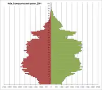 Gender and age pyramid of the population of Sviatoshynskyi district in 2001