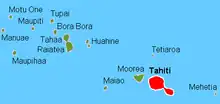 Location of Tahiti (red) and Mehetia (lower right), among the Society Islands