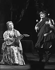 She appeared at the Vienna State Opera from 1971 first as Lisa, with great success,[1] later also as Leonora, Tosca, Aida and Elisabetta.[7] She performed as Tatiana at the Deutsche Oper Berlin in 1974,[5] She appeared as a guest at other leading opera houses of Europe, for example at the Greek National Opera as Leonora in Il trovatore and Lisa in 1974 and as Tatiana in Eugene Onegin in 1976.[4] She toured extensively with the Bolshoi, including to the Metropolitan Opera in 1975[5] for Eugene Onegin and Pique Dame; she performed alongside her husband, tenor Vladimir Atlantov, Onegin conducted by Fuat Mansurov[8] and Pique Dame conducted by Yuri Simonov.[9]