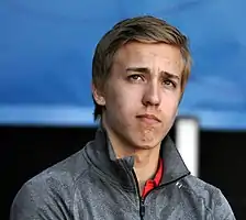 Teuvo Henri Matias Teräväinen (born 11 September 1994) is a Finnish professional ice hockey forward for the Carolina Hurricanes of the National Hockey League (NHL). Nicknamed "Turbo", he was selected in the first round, 18th overall, of the 2012 NHL Entry Draft by the Chicago Blackhawks after playing several seasons with the Jokerit organization in Finland.[1] Also being drafted by the Kontinental Hockey League (KHL)'s Lokomotiv Yaroslavl in the 2011 KHL Junior Draft,[2] he is known for his offensive abilities and play-making skills.[3] In 2015, Teräväinen won a Stanley Cup as a member of the Blackhawks.