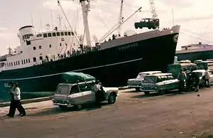 Swastika painted on the prow of MV Gullfoss in 1968.