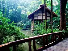 Racers completed the leg's Roadblock at the Du Fu Thatched Cottage.