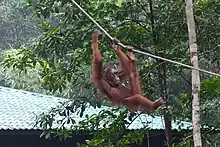 For their Speed Bump, Alli & Angie had to create a climbing rope for the orangutans. They had to use a slingshot to launch a line over a branch, secure a thicker rope and pull the rope over the branch before they could continue racing.- After the Intersection, teams had to drive to Kampung Danu, build a bamboo raft and then travel six kilometres (3.7 mi) down the river in order to find their next clue.