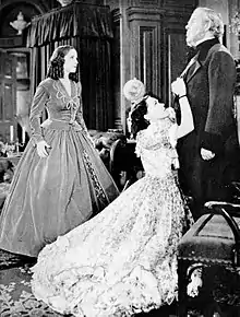 Norma Shearer, Maureen O'Sullivan, and Charles Laughton in The Barretts of Wimpole Street