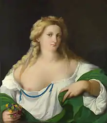 A Blonde Woman, one of Vecchio's portraits reproduced in the volume showing the woman's weight and exposed breast.
