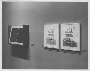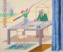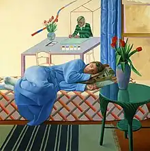 - ↑ Hockney, David; Barron, Stephanie; Tuchman, Maurice; Kitaj, R. B.; Geldzahler, Henry; Knight, Christopher; Schiff, Gert; Hoy, Anne; Silver, Kenneth E.; Weschler, Lawrence (1988). David Hockney : A Retrospective. Los Angeles County Museum of Art, Metropolitan Museum of Art, Tate Gallery (First ed.). Los Angeles, California: Los Angeles County Museum of Art. p. 41. ISBN 9780810911673. OCLC 16868050.
