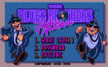 The Blues Brothers: Jukebox Adventure is a video game based on the band The Blues Brothers and a sequel to The Blues Brothers. The game was released for the Super Nintendo Entertainment System in 1993 (as The Blues Brothers) and for IBM PC compatibles and Game Boy in 1994.[8] An Amiga port was developed and even reviewed by several videogame magazines, but never released.[9]