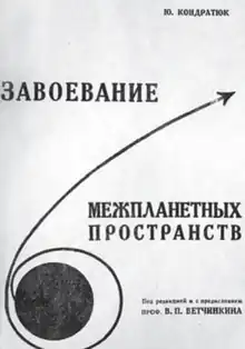 While working as a mechanic, Yuri Kondratyuk completed the manuscript of a book titled The Conquest of Interplanetary Spaces, dealing with rocket motion and issues concerning the colonization of space. He also suggested using a gravitational slingshot trajectory to accelerate a spacecraft.[1] In 1925, Kondratyuk made contact with Moscow-based scientist Vladimir Vetchinkin and sent him the manuscript. Up to that time, he and his work were unknown to rocketry enthusiasts. While the book was enthusiastically received by scientists in Moscow, no publisher would touch such a fanciful work.