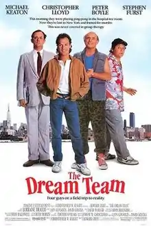 The Dream Team is a 1989 American comedy thriller film directed by Howard Zieff and produced by Christopher W. Knight for Imagine Entertainment and Universal Pictures. It stars Michael Keaton, Christopher Lloyd, Peter Boyle and Stephen Furst as mental-hospital inpatients who are left unsupervised in New York City during a field trip gone awry. Jon Connolly and David Loucka wrote the screenplay.