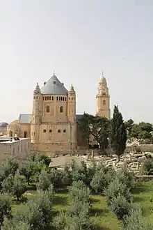 - Abbey of the Dormition (also Abtei Dormitio Beatae Mariae Virginis), Jerusalem. The Benedictine Abbey on the Hill of Zion is owned and maintained by the German Association of the Holy Land, but it is still in need of renovation. Adjacent to it is the Dormitio Church with its signature tower, visible through the entire Old Town of Jerusalem. The guesthouse Beit Josef is also a part of the abbey and it houses German Theology students for the academic year.