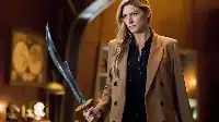 ![]() Ava Sharpe holding a sword used to kill encores. | |