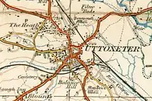A 1921 Ordnance Survey map showing The Heath and Uttoxeter