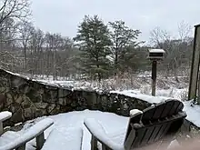 The site covers 56 acres and includes a mile-and-a-half walking trail that accesses ten outdoor art installations and thirty haiku.[5][10][6][11] In 2019 the fossilized tooth of a woolly mammoth was found on the property by a hotel guest.[12]