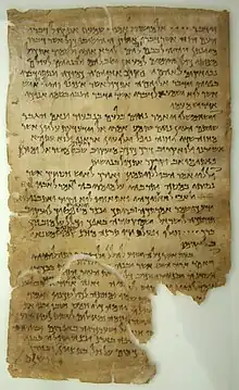 The Dead Sea Copper Scroll was found near Khirbet Qumran, which is an inventory of hidden gold and silver in specie, but also some vessels, presumably taken from the Temple in Jerusalem in circa 68 CE. It is written in a Mishnaic-style of Hebrew.[4]