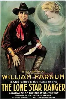 The Lone Star Ranger is a lost[1] 1919 American silent Western film based on the 1915 novel by Zane Grey and stars William Farnum. The film was directed by J. Gordon Edwards and produced and distributed by Fox Film Corporation. Portions of the film were shot in Palm Springs, California.[2] Just 3 years after the release of the film Fox dusted off the script and refilmed the story with Tom Mix.[3][4]