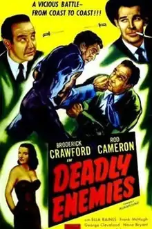 The Runaround is a 1946 American comedy mystery film directed by Charles Lamont and starring Rod Cameron, Ella Raines, Broderick Crawford, and Frank McHugh.[1][2][3][4] The film is also known as Deadly Enemies.[5] It was produced and distributed by Universal Pictures and shot at the studio's Universal City.