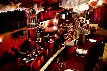 The venue consists of four bars, a Bedouin-covered smoking deck, a VIP balcony , a VIP section, and carousel-style booths that run along the main dance floor.