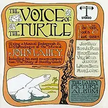 The Voice of the Turtle is the seventh album by American guitarist John Fahey. Recorded and released in 1968, it is considered one of his more experimental albums, combining not only folk elements, but shreds of psychedelia, early blues, country fiddles, ragas, and white noise.[1] The album had many reissues with various track listings, jacket designs and mismatched titles.