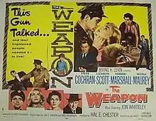 The Weapon is a 1956 black and white British thriller film directed by Val Guest and starring Steve Cochran, Lizabeth Scott, Herbert Marshall, and Nicole Maurey. It was made by Republic Pictures.[1] Its themes were originally explored in the 1951 British film The Yellow Balloon.[2]