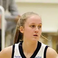 During her final season, she averaged 11.8 points while making 44% of her three point shots.[11]