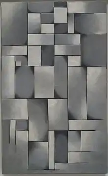 Van Doesburg's work has had significant influence, including that dealing with issues of crossover art, design and architecture. For example, his Space-time construction #3 (1923) was a key work in the Miller Company Collection of Abstract Art's Painting toward architecture exhibition (1947–52, 28 venues).[10] From that time, the work was influential to the practice of noted architect Harry Seidler. In 1992, he acquired the artwork, which was donated to the National Gallery of Australia in Canberra in 2010.[11] In a travelling, international exhibition on Seidler's work, Van Doesburg's Space time-construction #3 was shown as a key influence.[12]