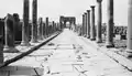 The original Roman grid plan is magnificently visible in the orthogonal design, highlighted by the decumanus maximus (east–west-oriented street) and the cardo (north–south-oriented street) lined by a partially restored Corinthian colonnade. The cardo does not proceed completely through the city but instead terminates in a forum at the intersection with the decumanus.