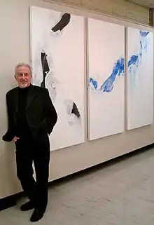Smibert's art reflects three diverse streams of thought: Japanese minimalism, the early 19th century English School of Painting and Abstract Expressionism. He has been recognised as one of Australia's leading watercolourists.[4] His 1993 collaboration with Japanese couturier Yasuhiro Chiji led to a signature range of high fashion, yūzen kimono based on Smibert's watercolours.[5] Some works (for example his Yosemite Valley watercolours and acrylics) are clearly inspired by the study of Turner, Caspar David Friedrich and the early 19th century philosophy known as the Sublime. For Australian landscapes Smibert sometimes uses local iron ore as pigment.[6] Smibert's art is deeply informed by his study in aikido. His larger acrylic abstracts use the energy flow ('ki') of aikido to create a broad calligraphy reminiscent of Franz Kline and Action Painting. Smibert's career includes exhibitions in Europe, South East Asia, Japan, the Americas and Australia.[6][7]