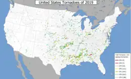 Map of the 2019 United States tornado paths from the results of storm surveys