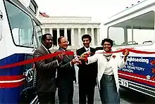 Tourmobile was a sightseeing company that operated in Washington DC from 1969 until 2011.[2][3] The company was founded as a subsidiary of Universal Studios with three buses and grew to become an independent company carrying more than 700,000 passengers per year at $32 per ticket on its fleet of 45 vehicles.[4] Passengers were able to board and alight as often as they liked on the day in which a ticket was purchased.[5][6] Tourmobile operated a legal monopoly for guided tours of the National Mall and Arlington National Cemetery, which prevented the DC Circulator, Capital Bikeshare, WMATA,[7] and other organizations from providing services in highly-traveled parts of the city.[8][9] This monopoly was highly controversial from the start.[10] The National Park Service received an estimated $330,000 per year from the arrangement.[11] After the termination of the Tourmobile contract, companies including Gray Line Worldwide and Open Top Sightseeing began providing National Mall tours.[12] The company's fleet consisted of a distinctive style of bus, the newest of which was manufactured in 1976.[13]