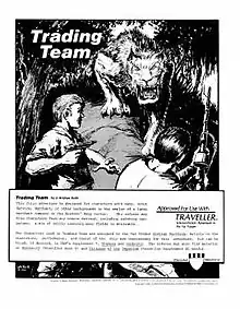 Trading Team was written by J. Andrew Keith and was published in 1981 by Marischal Adventures as a 4-page pamphlet; a second edition was published in 1987 by Seeker.[2]