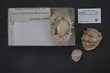 As of 2019, it is the only species in the genus Tribulus included in the World Register of Marine Species.[2] Tribulus has previously been considered a subgenus of the genera Murex, Purpura, and Thais.[2][3]