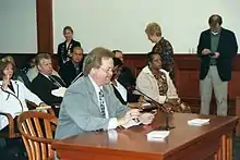 Brown ran for a seat on the Wayne-Westland Community Schools board one final time in the 1998 election and failed to garner many votes. At the same time, Brown filed a civil suit against the Bible Court, seeking damages "in excess of $25,000".[21] The clerk of the Bible Court, Peter James Narsisian, issued an apology and resigned from his position in July 1997.[22]