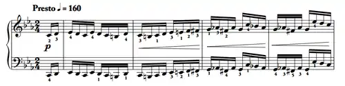 The third and final étude, Mouvement semblable et perpetuel, in C minor, for both hands together, is quite different from the previous two études. It consists of a continuous stream of sixteenth notes duplicated two octaves apart.