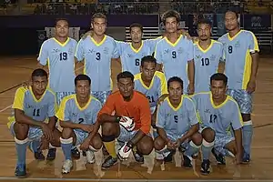 The Tuvalu national futsal team is the representative team for Tuvalu in international futsal competitions. It is controlled by the Tuvalu Islands Football Association. They have never won a game. Tuvalu participates in Oceanian Futsal Championship.