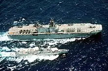 USS Belleau Wood (LHA-3), nicknamed "Devil Dog", was an amphibious assault ship and the second ship named after the World War I Battle of Belleau Wood. Her keel was laid down on 5 March 1973 at Pascagoula, Mississippi, by Ingalls Shipbuilding. She was launched on 11 April 1977, and commissioned on 23 September 1978.