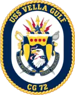USS Vella Gulf (CG-72) is a Ticonderoga-class guided missile cruiser that served with the United States Navy. She was the second ship named for the Battle of Vella Gulf, a naval engagement in the Solomons campaign of World War II, the first being USS Vella Gulf (CVE-111), an escort carrier commissioned in 1945. The ship's keel was laid down on 22 April 1991 at Pascagoula, Mississippi, by Ingalls Shipbuilding, then a division of Litton Industries. She was launched on 13 June 1992, sponsored by Mary A. McCauley, wife of Vice Admiral William F. McCauley (Ret.), and commissioned on 18 September 1993 at Naval Station Norfolk.[3]
