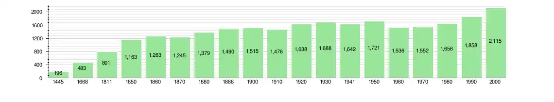 As of 2000, there were 833 private households in the municipality, and an average of 2.5 persons per household.[9] There were 207 households that consist of only one person and 69 households with five or more people. In 2000, a total of 804 apartments (92.4% of the total) were permanently occupied, while 47 apartments (5.4%) were seasonally occupied and 19 apartments (2.2%) were empty.[12] As of 2009, the construction rate of new housing units was 2.6 new units per 1000 residents.[9] The vacancy rate for the municipality, in 2010, was 1.11%.[9]