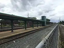 The station's low-level, concrete platforms are approximately 450 feet (137 m) long covered by steel, "butterfly-style" canopies with wooden roof decking.[2] New York Central made use of four tracks situated on two island platforms; the Pennsylvania Railroad used two tracks on a single island platform. A network of tunnels beneath the station facilitated the transfer of mail to and from the former Griswold Plaza Post Office nearby. A bomb shelter, still stocked with cases of "U.S. Civil Defense All-Purpose Survival Crackers" from the early 1960s, is next to the station's boiler room and its three coal-fed furnaces.[10][11]