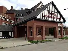 A local booster organization called the Urbana Hotel Company began raising money for a hotel in Urbana in 1921. The group raised $223,000 by selling shares in the hotel, and construction on the Urbana-Lincoln Hotel began in 1923. The hotel opened to guests by November of that year and was formally dedicated on January 31, 1924. Local architect Joseph Royer designed the hotel in the Tudor Revival style; the building features extensive half-timbering on its stucco exterior. The hotel was not profitable, and the Urbana Hotel Company went bankrupt in 1937; the hotel stayed open after the company was reorganized. A new management company, the Urbana-Lincoln Company, took over the hotel in 1944 and extensively modernized it in the following decade. The hotel was incorporated into the mall's plans from the outset and was sold to mall owners Carson Pirie Scott shortly after the mall opened. After failing to turn a profit, the hotel closed in 1975 and was slated to be demolished. In the 1970s, the Jumer Hotel chain purchased the hotel. The new owners renovated and reopened the hotel later in the decade, and an addition was built on the building in 1982. The Jumer Hotel chain sold the hotel in 2001. From 2001 the hotel was bought and sold multiple times. In 2010, developer Xiao Jin "XJ" Yuan bought the hotel for $600,000, renaming it the Urbana Landmark Hotel.[3] Yuan made renovations to the hotel, including fixing the roof, upgrading the HVAC and plumbing systems,[2] and modernizing some rooms. Yuan's plans were to open the hotel in phases beginning in 2012.[4] In July 2015, Yuan put the hotel up for sale for $5.4M, and the hotel closed in April 2016.[2] After three failed attempts to sell the hotel, Icon Hospitality LLC purchased the hotel in January 2020 for $1M, with plans to invest $15M into renovations and re-open the hotel as the Hotel Royer Urbana, Tapestry Collection by Hilton.[5] The renovated hotel is set to open in late 2023. [6] [7]