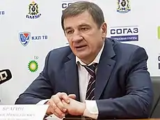 Valeri Nikolayevich Bragin (Russian: Валерий Николаевич Брагин) (born May 31, 1956) is the current assistant coach of SKA Saint Petersburg of the Kontinental Hockey League (KHL). He is also a retired ice hockey forward. He is former coach of the CSKA Moscow team in the KHL and the Russian national team. He is an ethnic Tatar.