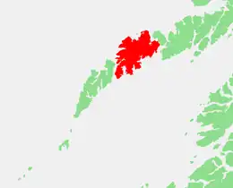 Vestvågøya or Vest-Vågøy is an island in the Lofoten archipelago in Nordland county, Norway. The island is located within Vestvågøy Municipality. The island lies between the islands of Austvågøya and Gimsøya to the northeast and Flakstadøya to the southwest. There are also several small islands and skerries surrounding the island. Vestvågøya makes up over 97% of the municipal area and about 99% of the inhabitants of the municipality live on the island. The European route E10 highway crosses the island connecting to Flakstadøya by the Nappstraum Tunnel and to Gimsøya by the Sundklakkstraumen Bridge.[1]