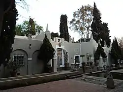 The house was designed by architect Gordon Leith in 1923,[1] as a house in Spanish style for the epidemiologist A. J. Orenstein.[2] It was purchased in 1957 by English architect David Morrison (19102000), who then spent many years changing the house to a pastiche of an Italian villa with its formal gardens, which reminded the architect of the Villa d'Este at Tivoli near Rome. It has a main pool at the front which is a swimming pool, statues and fountains, and a Jacuzzi and sauna. David Morrison lived in the house until 1993, when it was purchased by an interior designer who had the gardens renovated and replanted with junipers and cypresses.[3] From 20132016 it was used as business premises for a health spa.